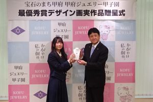 「宝石のまち甲府 甲府ジュエリー甲子園 」最優秀賞デザイン画実作品贈呈式が行われました。