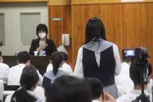 オンライン面接などを想定したお話もしていただきました。株式会社 学研教育みらいの講師の先生、関係者の皆様、お忙しいところ生徒のために来校して下さいましてありがとうございました。これからもよろしくお願い致します。