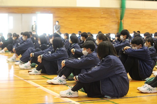 令和3年11月12日(金)体育館アリーナにおいて、2学年修学旅行の結団式が行われました。修学旅行のしおりを持参して最終的な確認をしました。団長の谷内教頭先生よりお話をしていただきました。