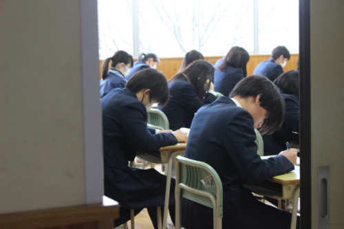 令和6年2月21日(水)令和5年度後期第2回試験(1・2年生)1日目の様子です。富士吉田市は小雨が降ったり止んだりで昨日と比べて寒い朝を迎えました。1・2年生は先週の試験前週間から定期試験にむけて、集中して勉強しています。