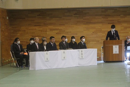 令和6年2月29日、3年生の同窓会入会式が行われました。同窓会長様をはじめ、役員の皆様に見守られて3年生が同窓会の仲間入りをしました。