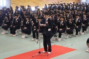 答辞 3年生を代表して前生徒会長が吉田高校での3年間の思い出や感謝の気持ちを伝えました。