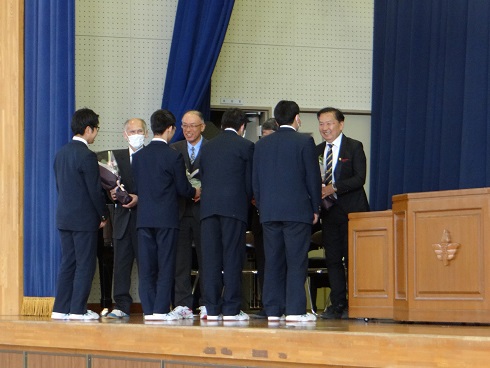 生徒から花束の贈呈です。離退任される先生方と一緒に吉高の校歌を歌いました。