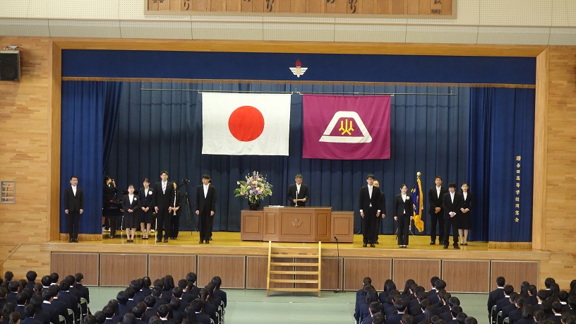 入学許可 権太校長先生より、普通科176名 理数科35名の入学を許可していただきました。