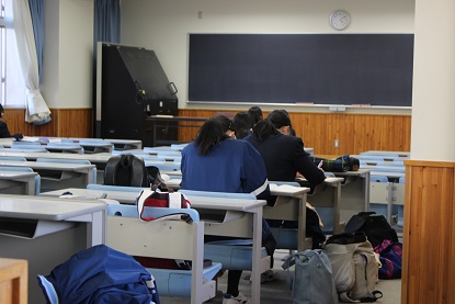 今週は、後期第2回定期試験前週間です。1・2年生は2月20日(火)~23日(金)まで後期第2回試験になります。毎日寒いですが、体調管理をしっかりとして試験に臨みましょう。