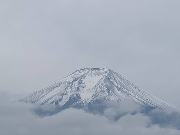 令和7年10月23日(木)今朝の富士山の様子です。ここ数日、雨や曇りの日が多かったので、富士山の姿を見ることができませんでした。今朝、富士山を見てみると・・・5合目付近まで雪が降っていました!!