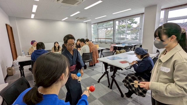 令和7年10月26日(日)下吉田コミュニティセンターで開催された「日本語でくらす富士吉田 日本語交流会」に、放送部がボランティアとして参加しました。茶道や書道、かるた、けん玉、日本地図パズルなどを通して、在住外国人の皆さんと交流しながら日本文化を体験しました。