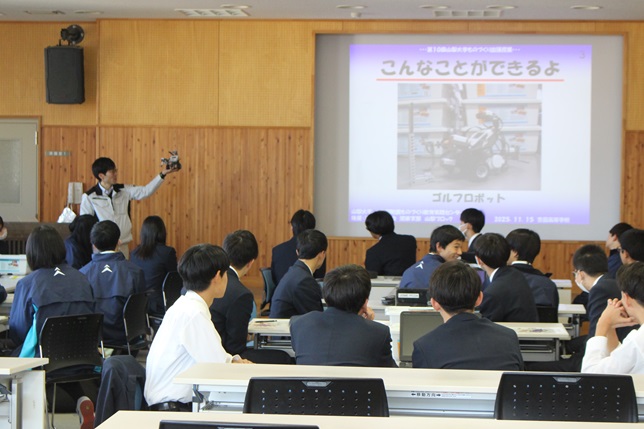 令和7年11月15日(土)OSの時間にメカパイロット講座が行われました。山梨大学工学部附属ものづくり教育実践センターより講師の先生をお迎えしてゴルフロボットの制作を実践しました。