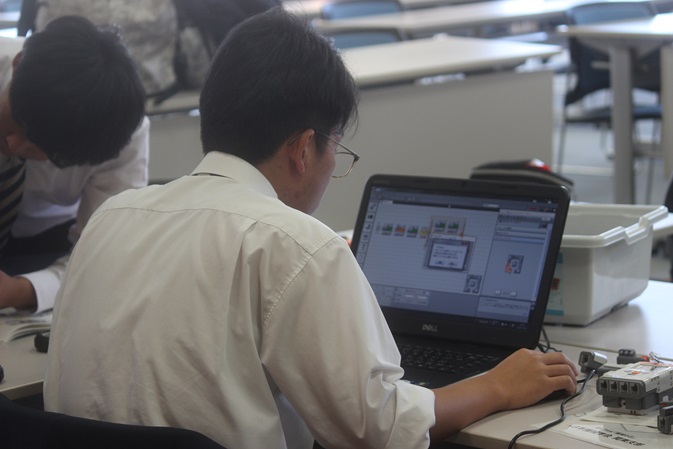 プログラミングをしていきます。仲間と試行錯誤しながら進めていきました。