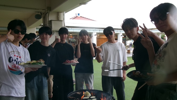 ・バーベキューではみんなで焼きながら食べたお肉が美味しかった!ライブを聴きながらみんなで盛り上がった。クラスの仲がさらに深まったと感じた。
