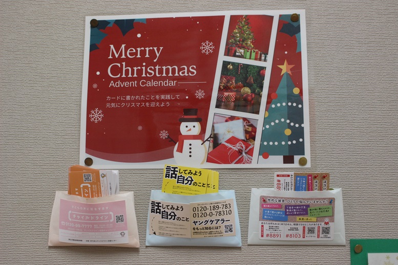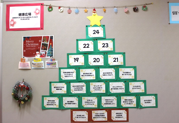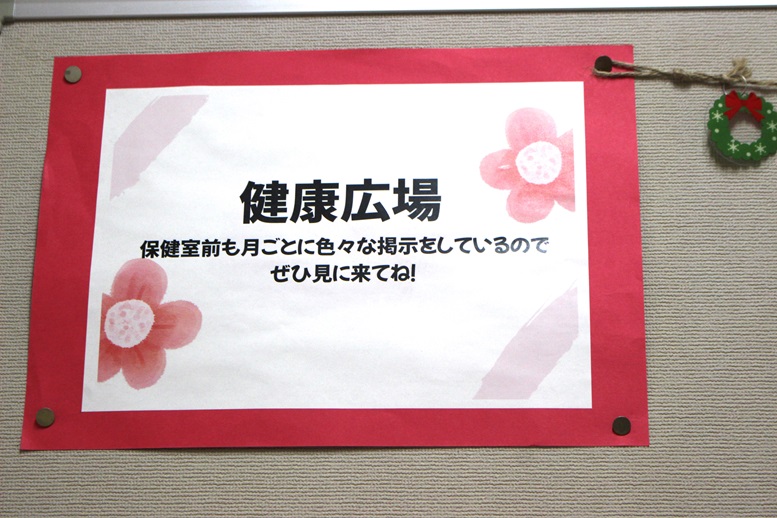 養護教諭の先生が11月から職員室前に新しく掲示スペースを作って情報発信しています。その名も『吉高健康広場』12月に入りクリスマスシーズンならではの掲示物がお目見えしています。