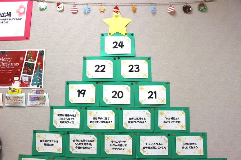 このツリーは日めくりカレンダーになっていて12月24日まで、毎日数字の裏のメッセージをみることができます。