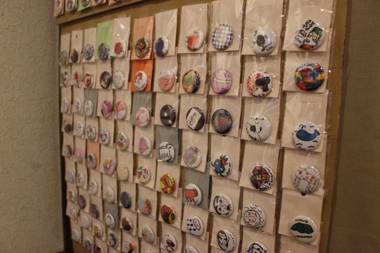 吉高の学園祭でおなじみの缶バッジも展示しています。これも1点ものなので個性溢れる缶バッジに仕上がっています。