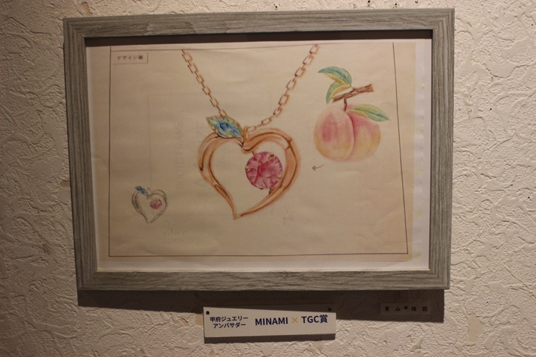 ジュエリー甲子園に出品した生徒の原画も飾っています。最高賞を受賞した生徒もいます💛