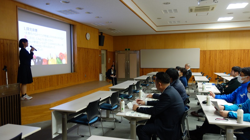 代表8班の皆さん、発表お疲れさまでした。この日のために探究活動、資料づくりなど大変だったと思います。興味深いテーマを掘り下げて時間をかけて活動しましたね。素敵な発表をありがとうございました。そして審査員の皆さま、長時間にわたり生徒の発表を聞いていただき、ありがとうございました。これからも吉田高校をよろしくお願いします。