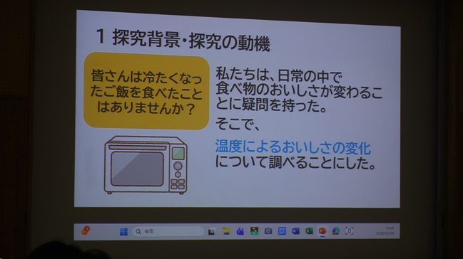 令和8年2月4日(水)令和7年度「富士山学Ⅱ」全体発表会が行われました。2年生の各分野の代表8班によるプレゼンテーションです。視聴覚教室より1・2年生の教室に配信で実施しました。