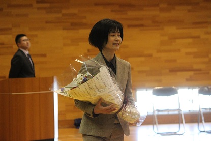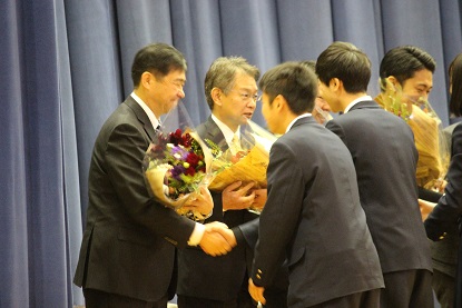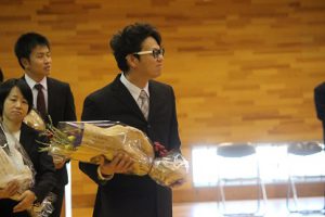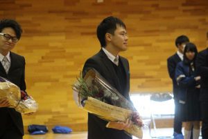 全校生徒を代表して生徒会の皆さんが花束を贈呈しました。