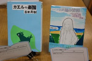 3年生の美術選択の生徒がブックデザインに挑戦しました。この授業では、身近な本や自分の好きな本を1冊選び、新たに表紙をデザイン。各自選択した本の読者や現状の表紙の改善点を生徒自身が考えて、第3者が見たときに「読みたい!」「どんな本なんだろう?」と興味を引くデザインを制作しました。