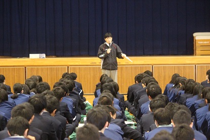 平成31年3月13日(水)体育館アリーナにて2年生の最終合同LHRが行われました。舟久保学年主任が①学習記録を通じて②試験全般を通じて③いよいよ3年生!という観点からお話をして下さいました。
