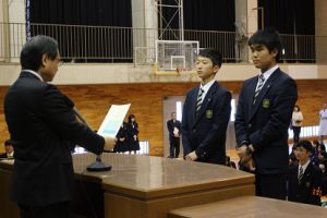 平成31年4月10日(水)対面式の後、納め式を行いました。ヨット部とボート部が各種大会で入賞して学校に賞状を納めました。