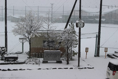 昨日の吉高周辺の様子です。雪が降りました。とても寒かったです。窓から見る外の風景が幻想的でした。